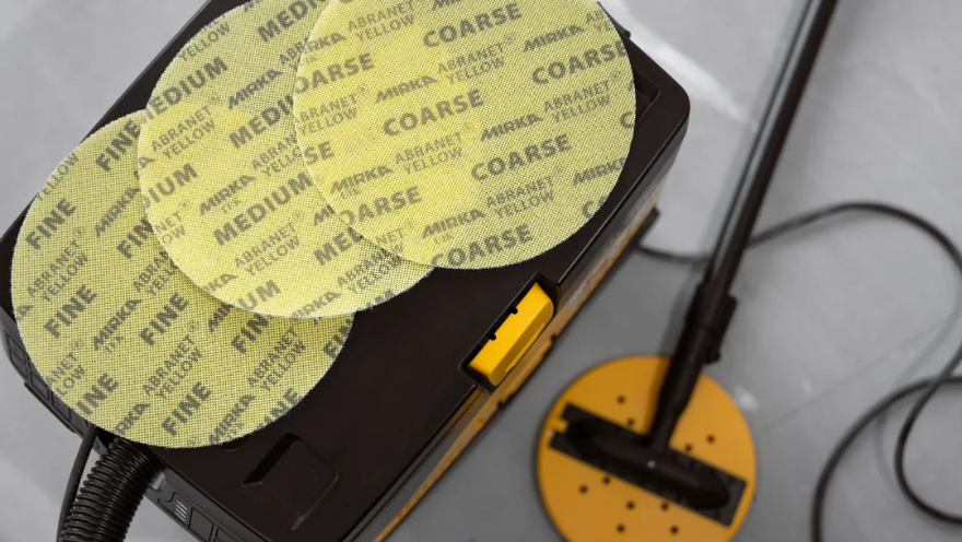 Abranet® Yellow là vật liệu mài mòn dạng lưới cao cấp, mang đến giải pháp chà nhám sạch hơn, mịn hơn và hiệu quả vượt trội cho thợ sơn và thợ xử lý bề mặt thạch cao.