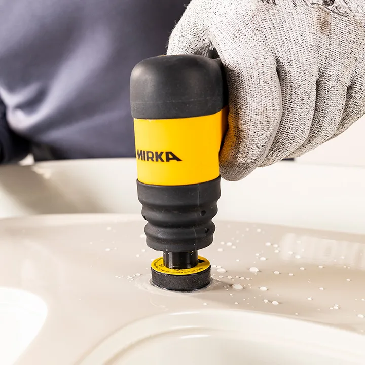 Loại bỏ các khuyết tật bề mặt như hạt bụi trong vài giây với hệ thống của Mirka, tiết kiệm cả thời gian và tiền bạc. Máy đánh nhám không dây của Mirka cùng với đĩa nhám mini đảm nhiệm việc loại bỏ khuyết tật trong lớp sơn trong suốt, sau đó đánh bóng bề mặt trở lại độ bóng như phòng trưng bày bằng máy đánh bóng không dây và hợp chất gốc nước của Mirka.