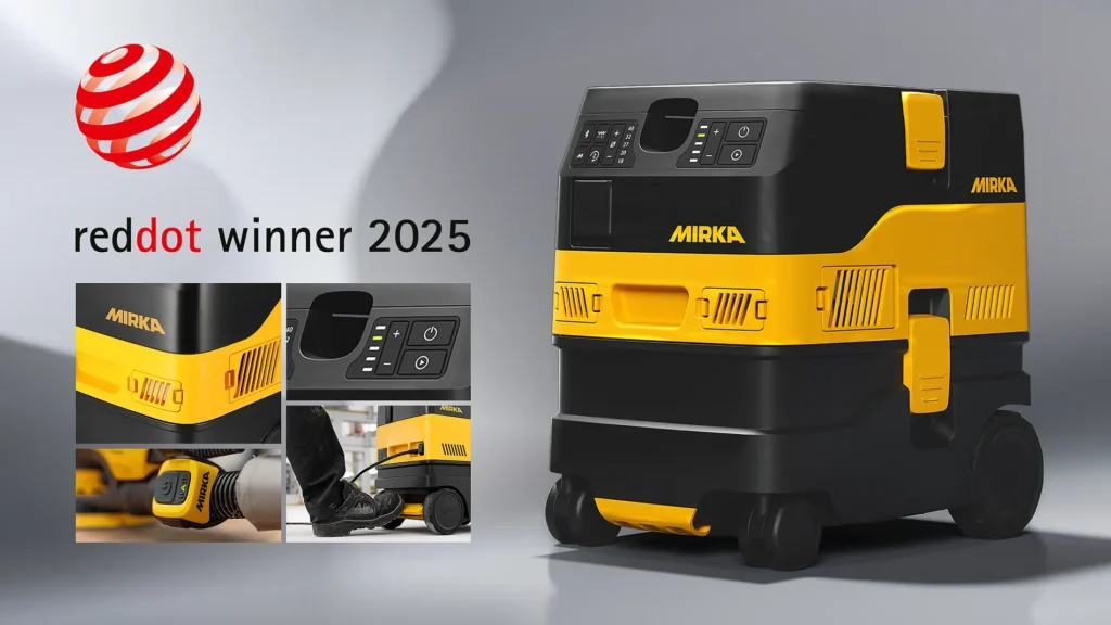 Máy hút bụi DEXOS® 1217 M AFC đã vinh dự nhận được Giải thưởng Red Dot danh giá: Thiết kế sản phẩm 2025. Dòng sản phẩm DEXOS đánh dấu một bước tiến vượt bậc trong dòng máy hút bụi M-class của Mirka. Thiết kế nhỏ gọn, thanh lịch, kết hợp với động cơ điện không chổi than mạnh mẽ và các tính năng thông minh tiên tiến, thực sự tạo nên sự khác biệt cho DEXOS.
